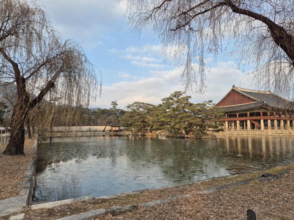 During the day, I enjoyed the tranquility of Gyeongbokgung Palace. The eaves of the snow-covered palace are a work of art no matter when you see them. In the evening, for a change of pace, I headed to the Myeongdong Theater. Watching a performance in a theater with such a classic exterior elevated the sophistication of my Seoul trip.