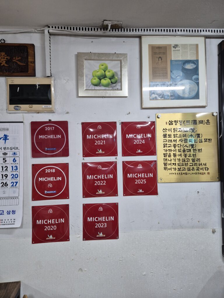 Even the best scenery is better on a full stomach! The highlight of this trip was definitely the food. After soaking in the energy of Gwangjang Market, I finally tried the famous Michelin Bib Gourmand-awarded Buchon Yukhoe. The freshness of the beef tartare, which practically melted in my mouth, was the highlight. Following that, I warmed up with Samcheong-dong Sujebi; the chewy dough and deep broth proved exactly why people wait in such long lines.
